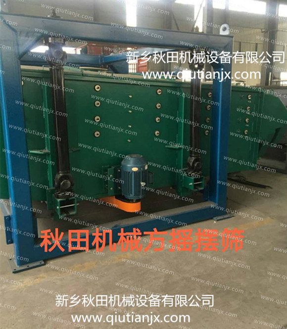 通過方型精密搖擺篩將振動器發(fā)生振動加搖擺運動,傳至篩面,從而使物料在篩機前部迅速分散,從而達到篩分之目的。